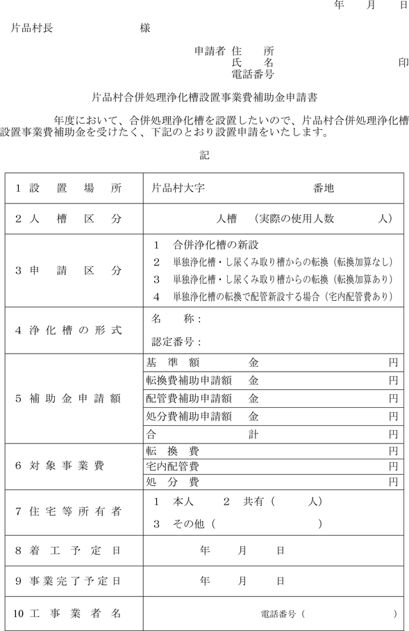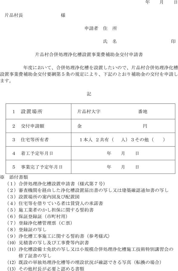 (1) 合併処理浄化槽設置申請書(様式第7号)