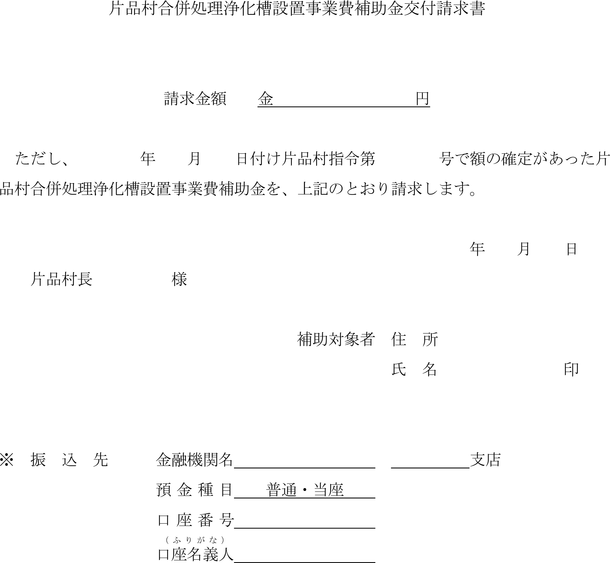 第10条 村長は、前条の規定による補助金の交付額の確定後、補助金交付請求書(様式第6号)による補助対象者の請求に基づき補助金を交付する。