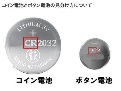 コイン電池は(1円玉くらいの直径で薄いもの) 電池にCR・BRと記号が書いてあります。
