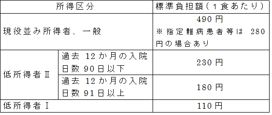 *1所得区分:一般の人の食費は、入院している医療機関によって金額が異なります。